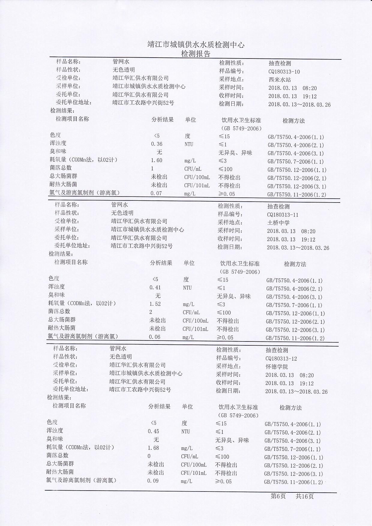 信息来源:华汇供水 ‖ 发稿作者:水质检验部 ‖ 发布时间:2018年5月18日 ‖ 查看2300次 ‖