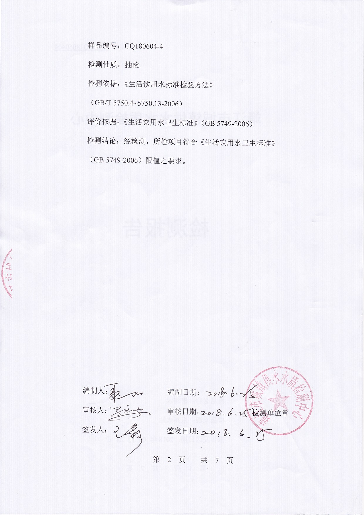 出厂水检测报告2018.06.04