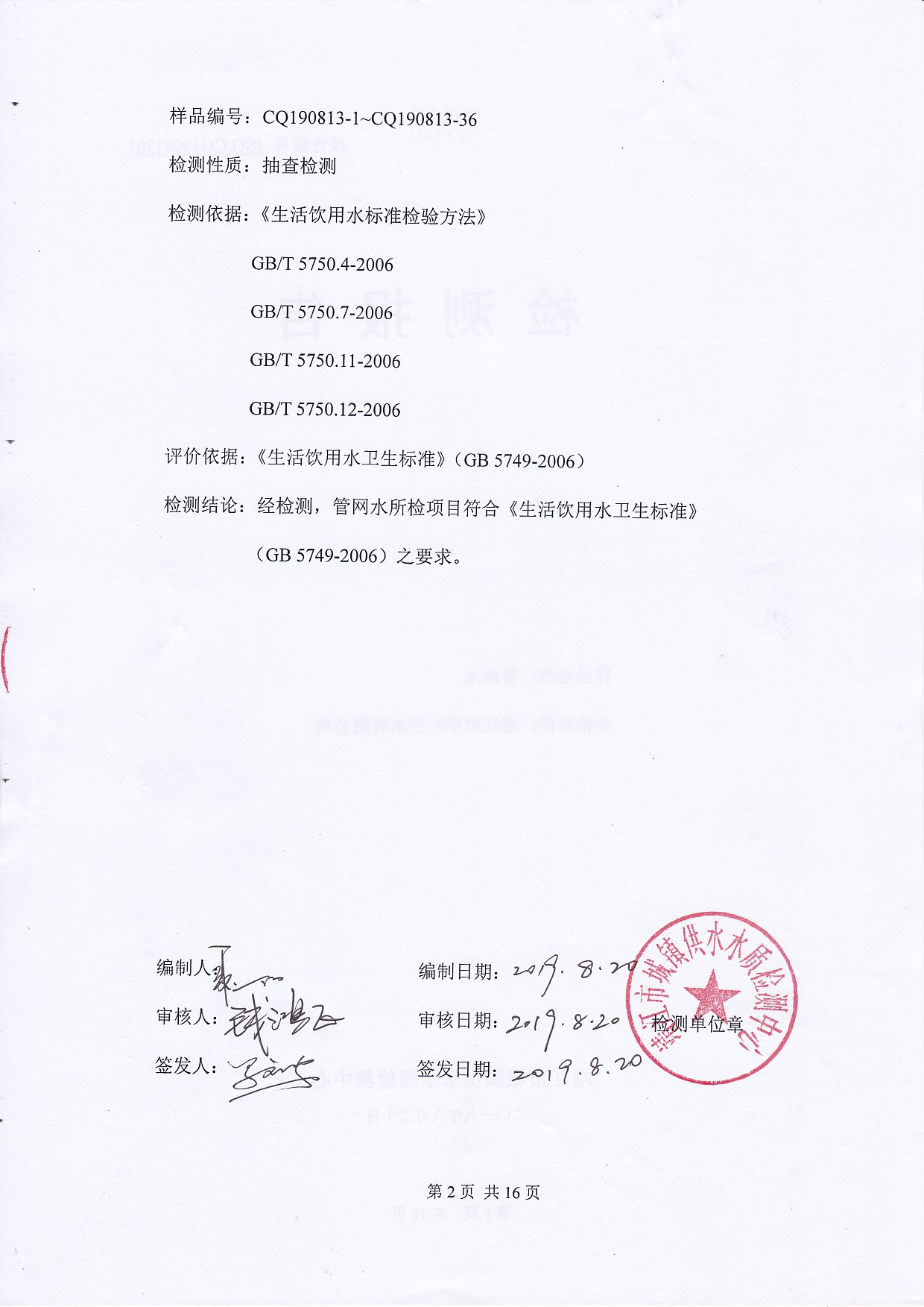 信息来源:华汇供水 ‖ 发稿作者:水质检验部 ‖ 发布时间:2019年8月20日 ‖ 查看4877次 ‖