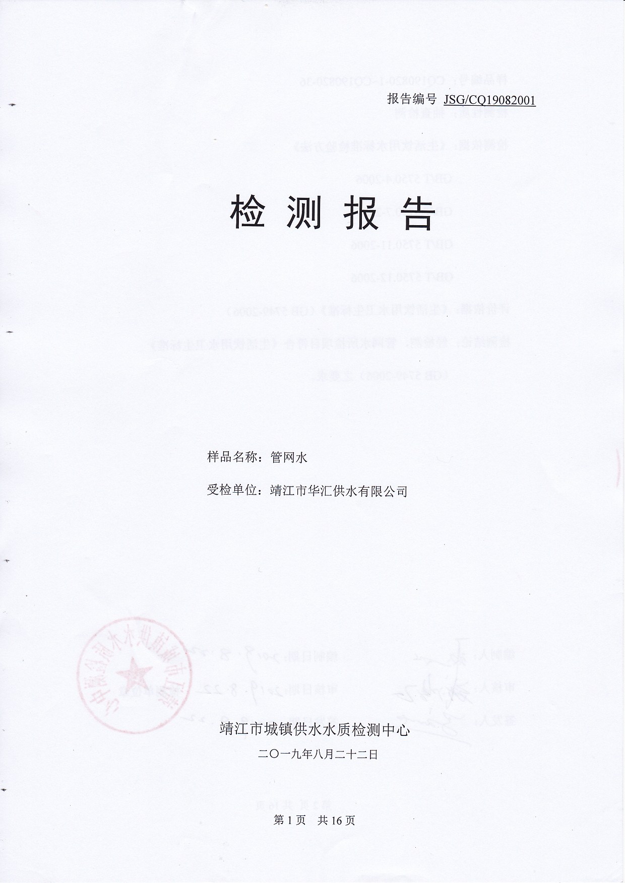 信息来源:华汇供水 ‖ 发稿作者:水质检验部 ‖ 发布时间:2019年8月22日 ‖ 查看5172次 ‖