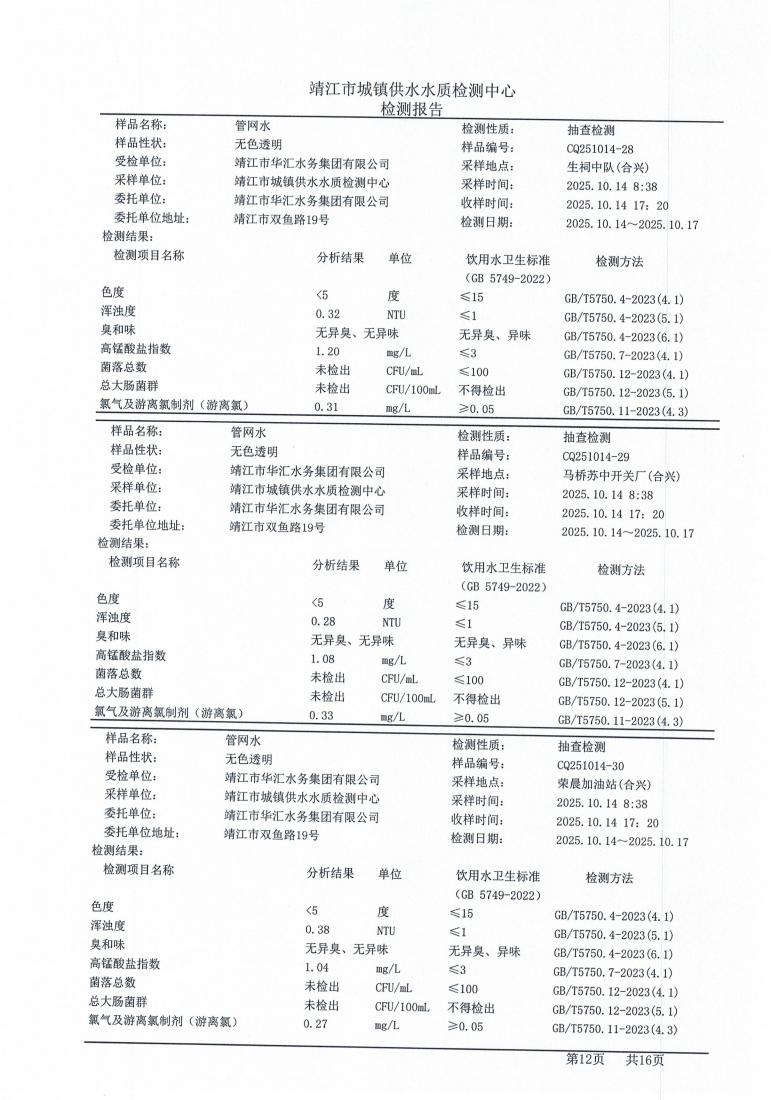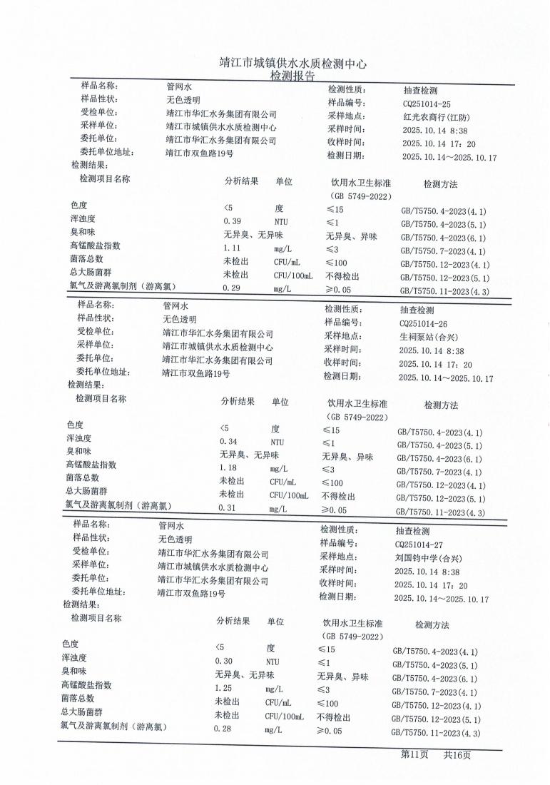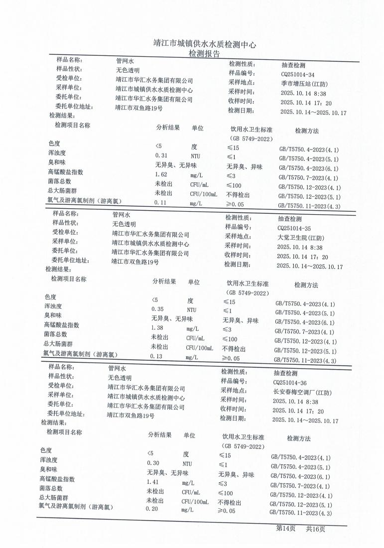 管网水检测报告2025.10.14