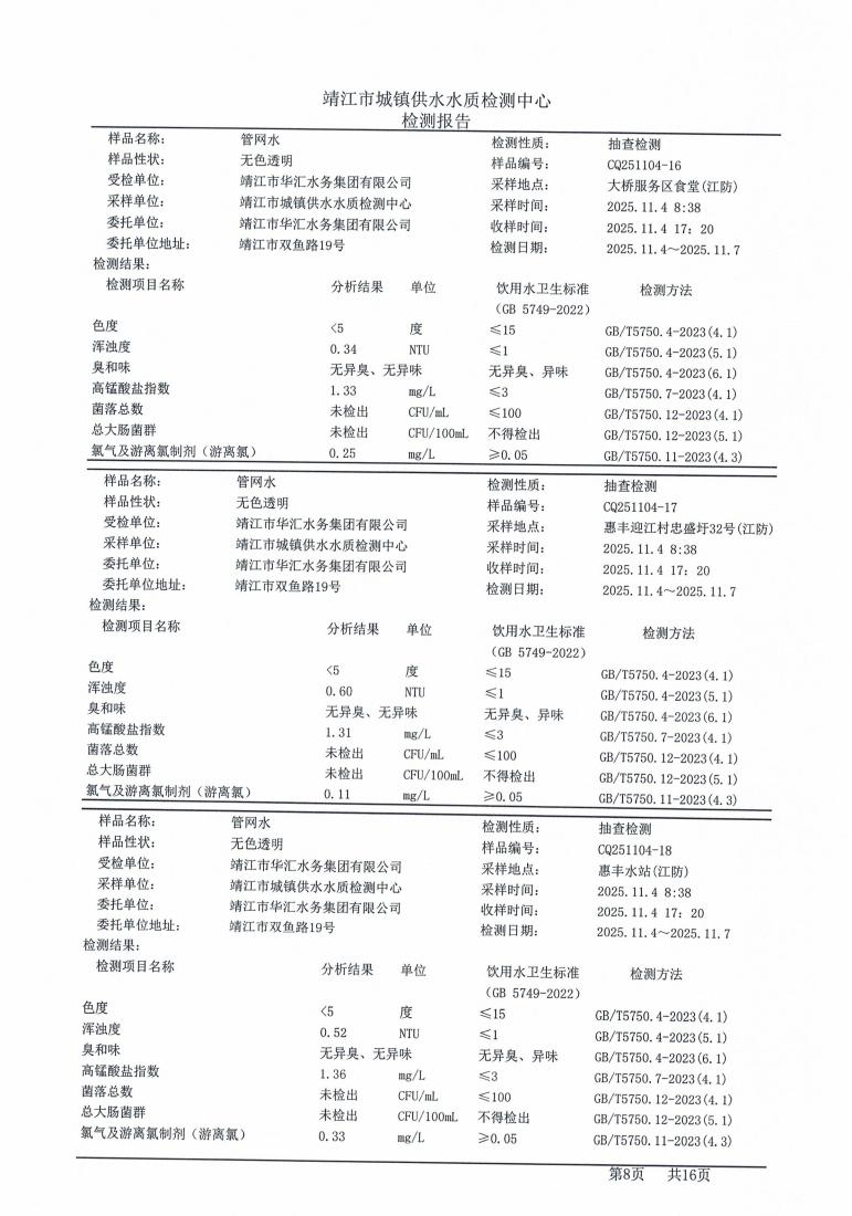 管网水检测报告2025.11.18
