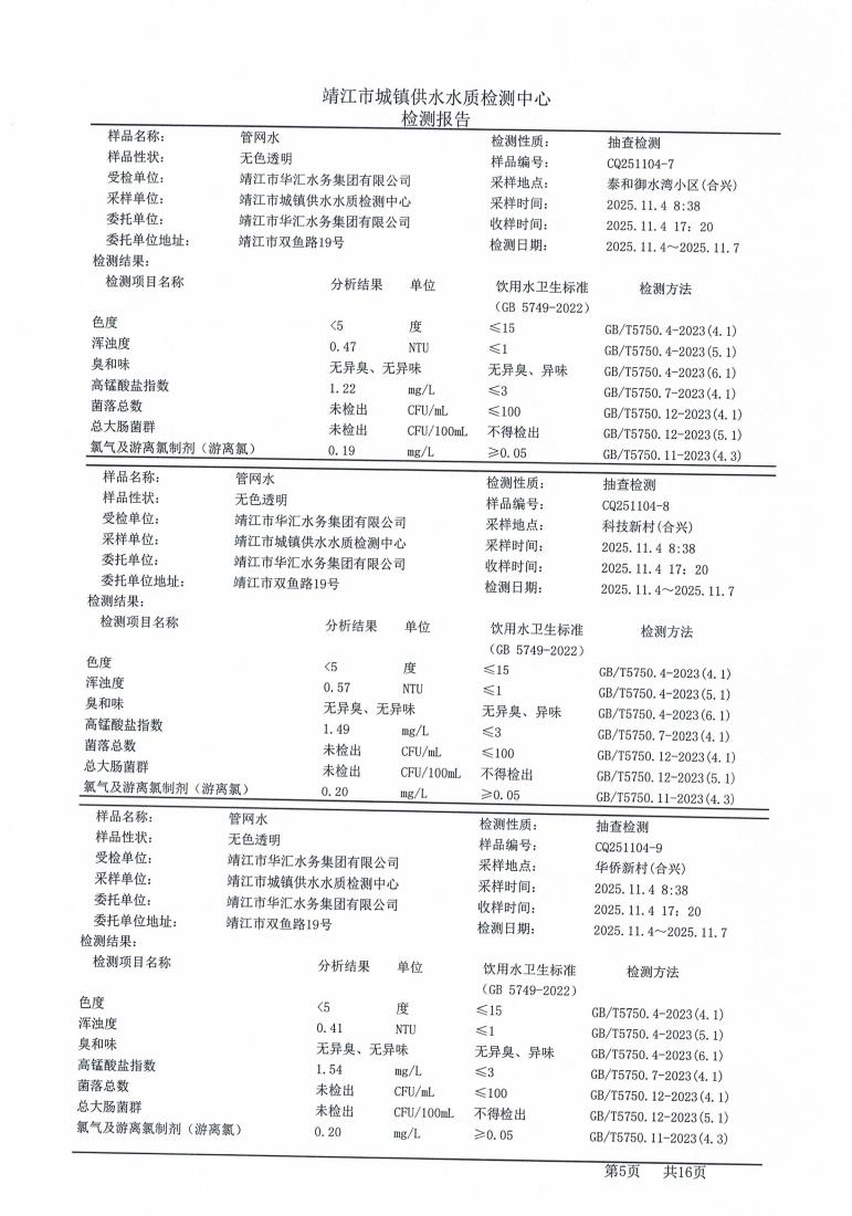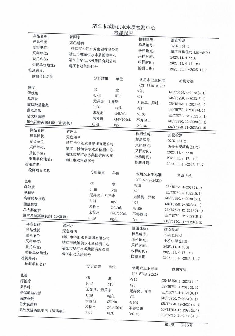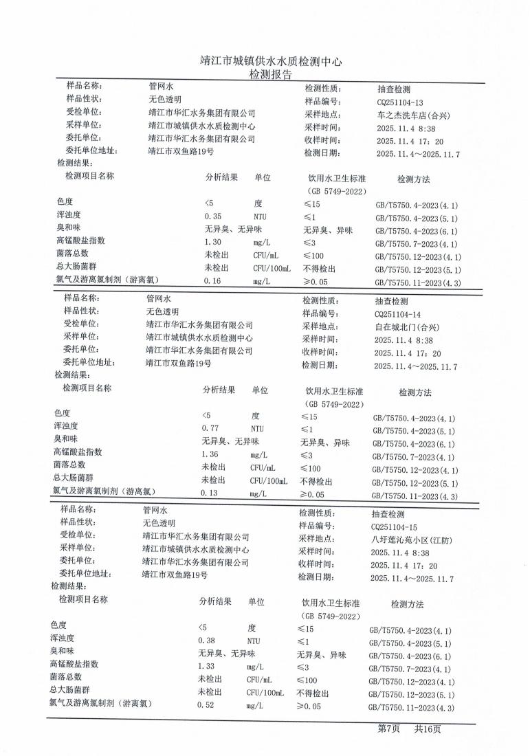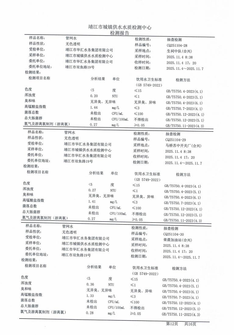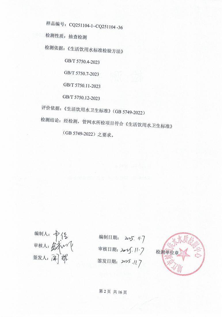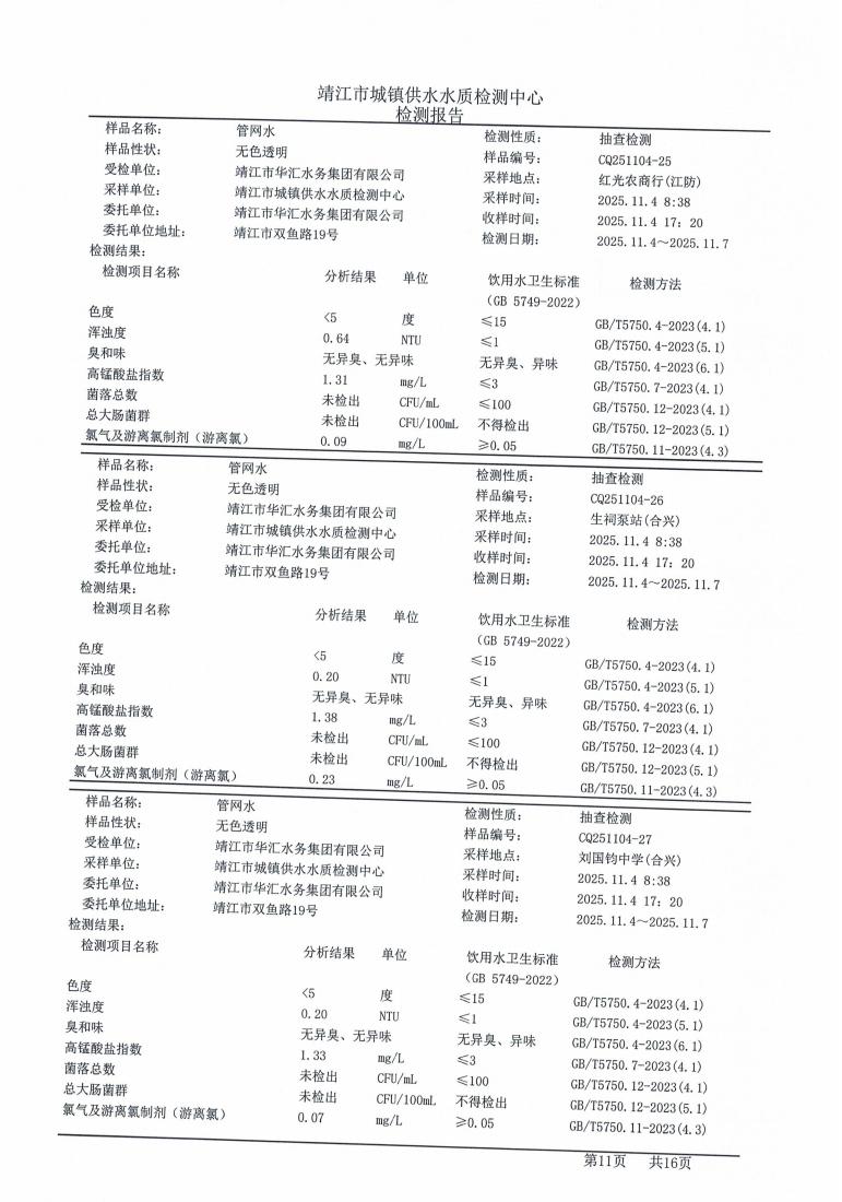 管网水检测报告2025.11.04