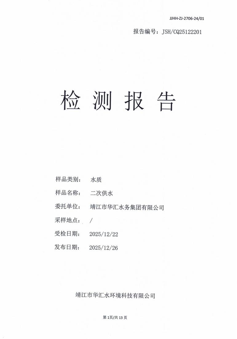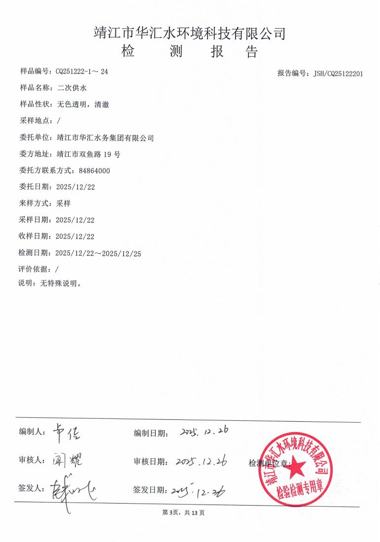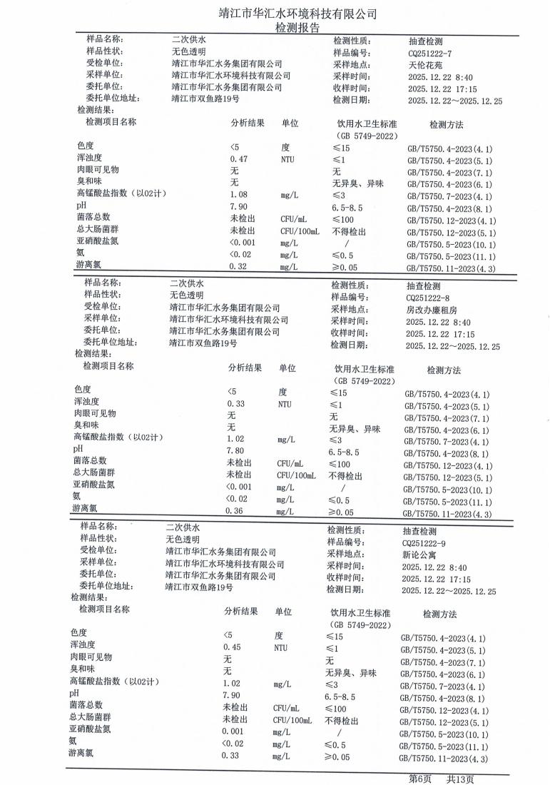 二次供水检测报告2025.12.22