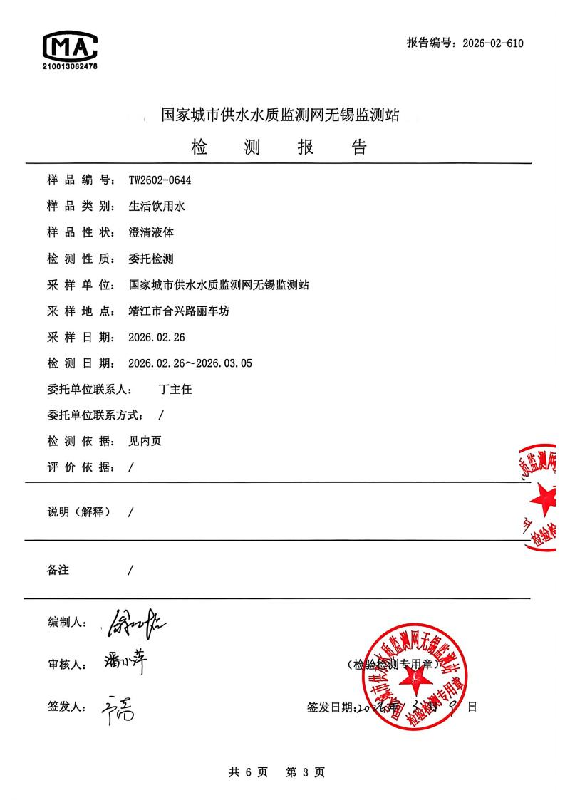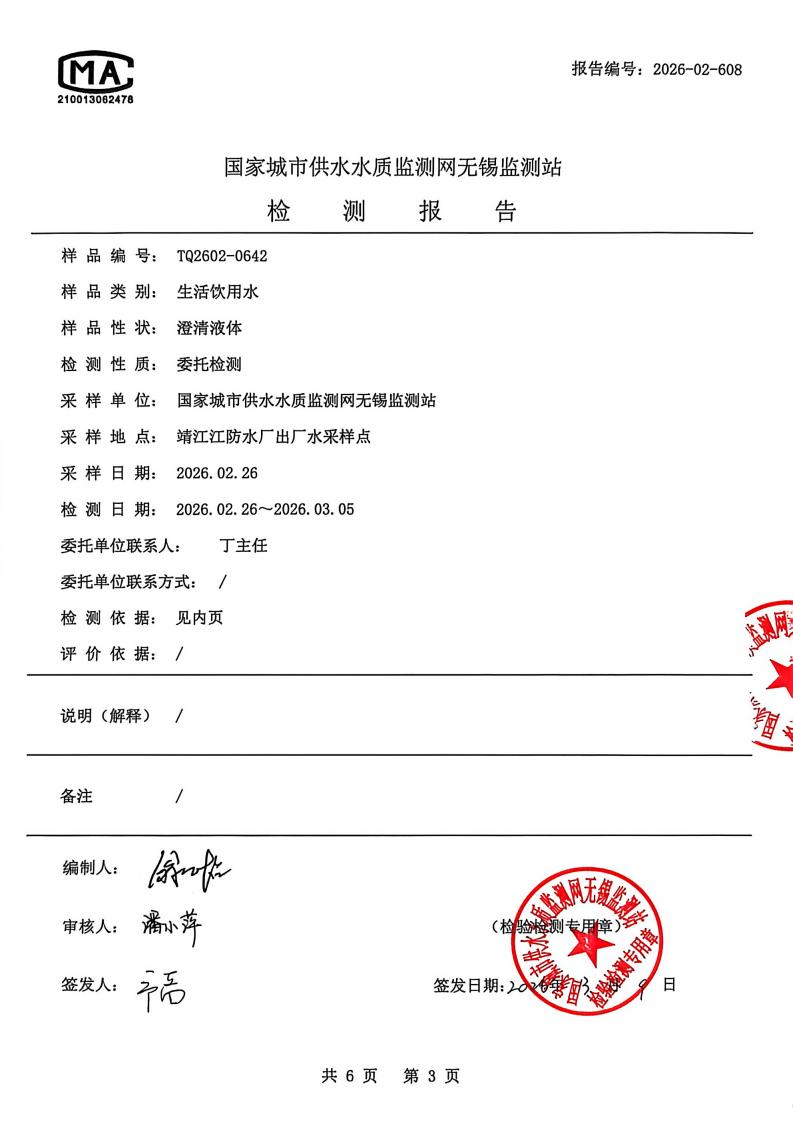 出厂水检测报告2026.2.26