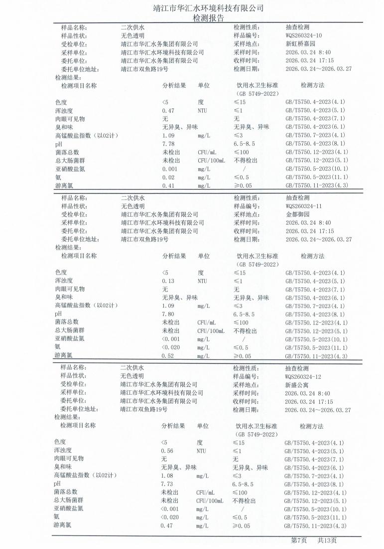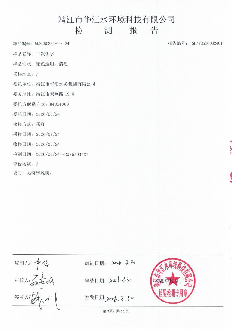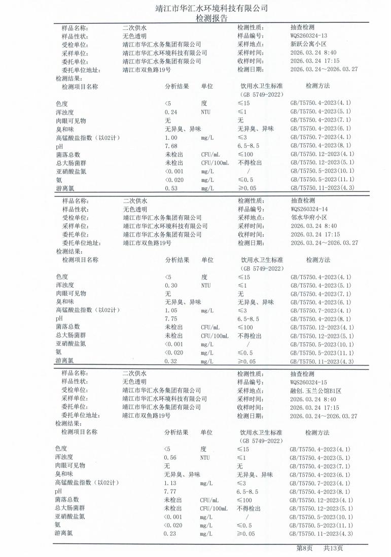 信息来源:华汇水务 ‖ 发稿作者:水质检验部 ‖ 发布时间:2026年3月27日 ‖ 查看11次 ‖