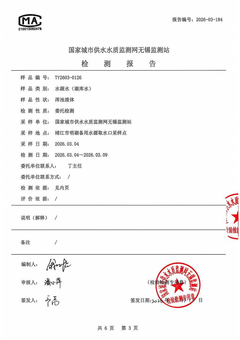 明湖水检测报告2026.3.4
